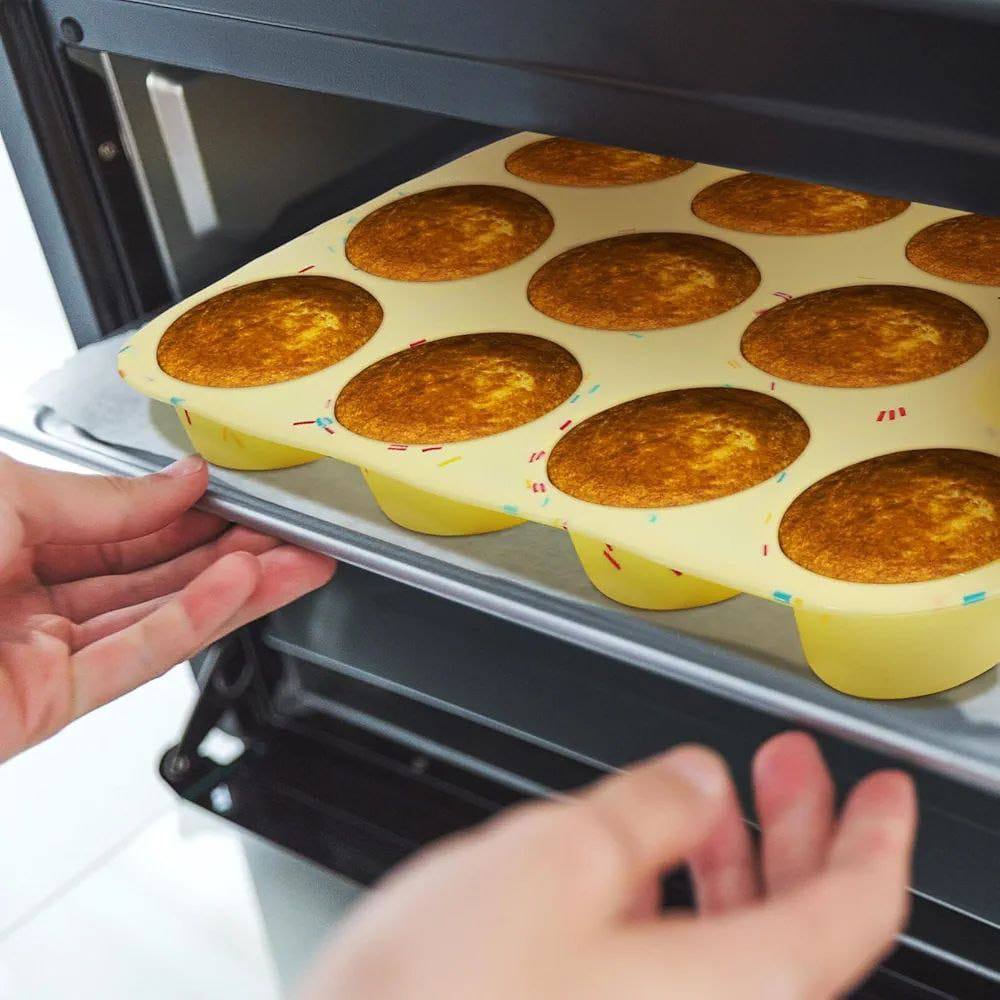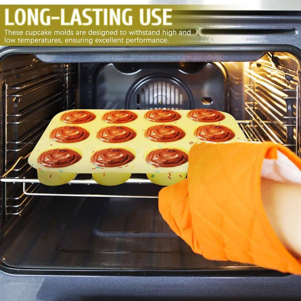 🧁 قالب كب كيك 12 عين – ترند، سيليكون حراري، جودة أوروبية!